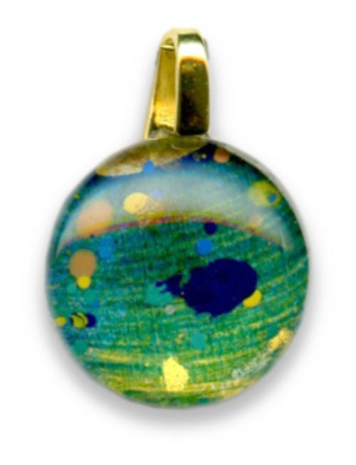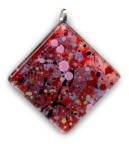 Annette's hand-painted pendants and earrings are original, painted images topped by glass. Each collection starts as a large acrylic painting on paper, which, after sealing, is cut up into circles, rectangles, and squares of various sizes to create individual pieces. Once the last cut shape has been turned into a piece of jewelry, the collection based on that painting is complete. Annette photographs the original paintings, so after they are cut up, they remain only as an electronic memory (you can view these images here ). Because each of her paintings is a beautiful work of art in its own right, the painful part of the jewelry- making process for Annette is that first cut! Annette is currently developing a new style of jewelry. All previous collections consisted of pendants and earrings topped with glass. The back side of each of those source paintings had a solid color (gold, silver, black, or other color). The image part of the paintings for all previous collections was protected by the glass on top of each cut piece. Only the backs of those source paintings were sealed. Unlike the previous collections, The Hearts & Stars collection is being created using an acrylic painting that has images on both sides. The pieces will not be topped by glass. The Hearts & Stars painting is sealed on both sides with an isolation coat and and then with two coats of varnish. Stay tuned for samples of finished pieces once Annette has finished cutting up this painting and begun creating jewelry from it. To see what the source painting (front and back) looks like, click here .