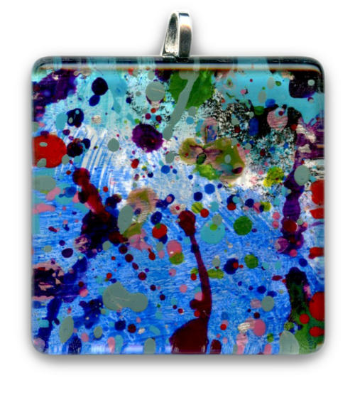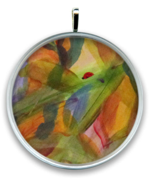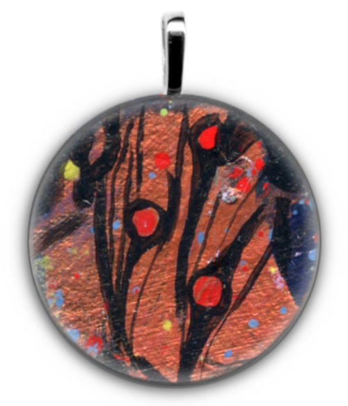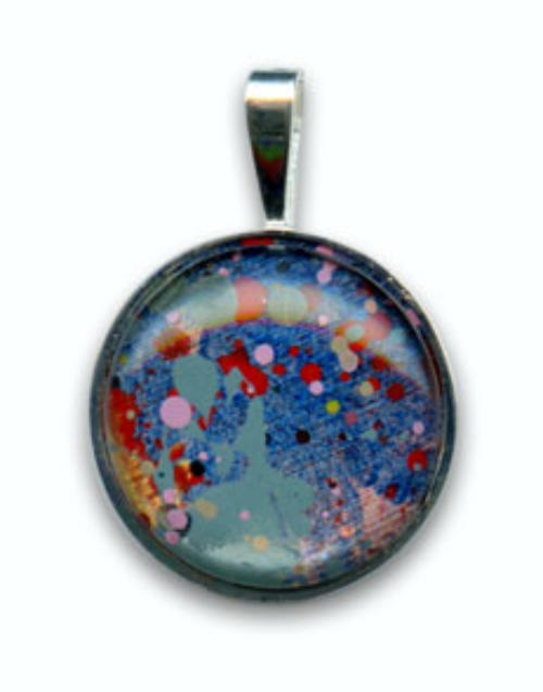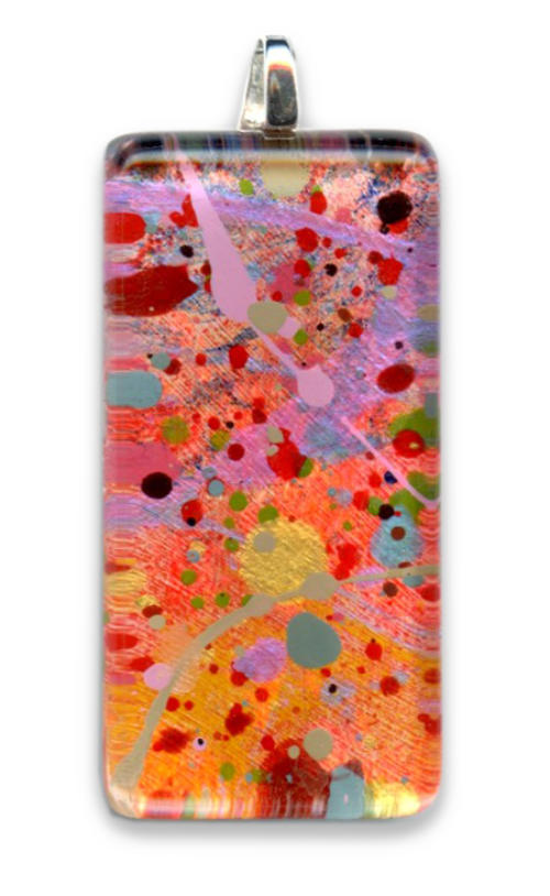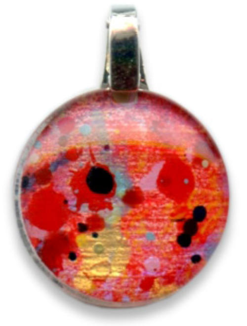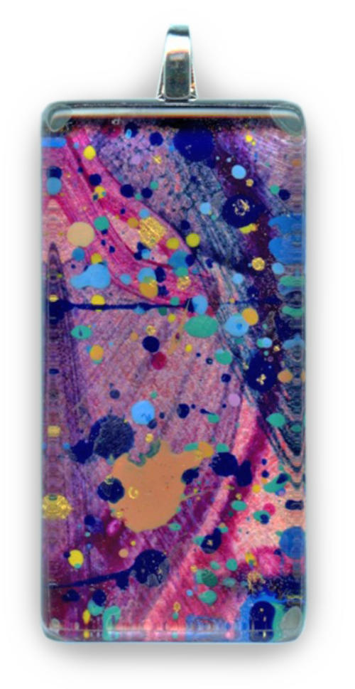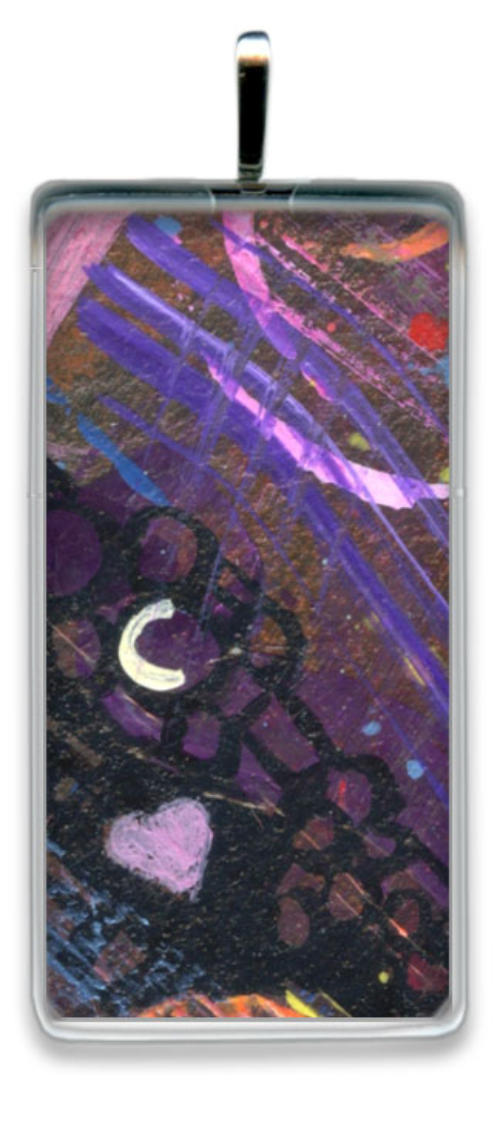 Annette's hand-painted pendants and earrings are original, painted images topped by glass. Each collection starts as a large acrylic painting on paper, which, after sealing, is cut up into circles, rectangles, and squares of various sizes to create individual pieces. Once the last cut shape has been turned into a piece of jewelry, the collection based on that painting is complete. Annette photographs the original paintings, so after they are cut up, they remain only as an electronic memory (you can view these images here ). Because each of her paintings is a beautiful work of art in its own right, the painful part of the jewelry-making process for Annette is that first cut! Annette is currently developing a new style of jewelry. All previous collections consisted of pendants and earrings topped with glass. The back side of each of those source paintings had a solid color (gold, silver, black, or other color). The image part of the paintings for all previous collections was protected by the glass on top of each cut piece. Only the backs of those source paintings were sealed. Unlike the previous collections, The Hearts & Stars collection is being created using an acrylic painting that has images on both sides. The pieces will not be topped by glass. The Hearts & Stars painting is sealed on both sides with an isolation coat and and then with two coats of varnish. Stay tuned for samples of finished pieces once Annette has finished cutting up this painting and begun creating jewelry from it. To see what the source painting (front and back) looks like, click here .